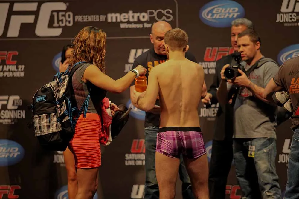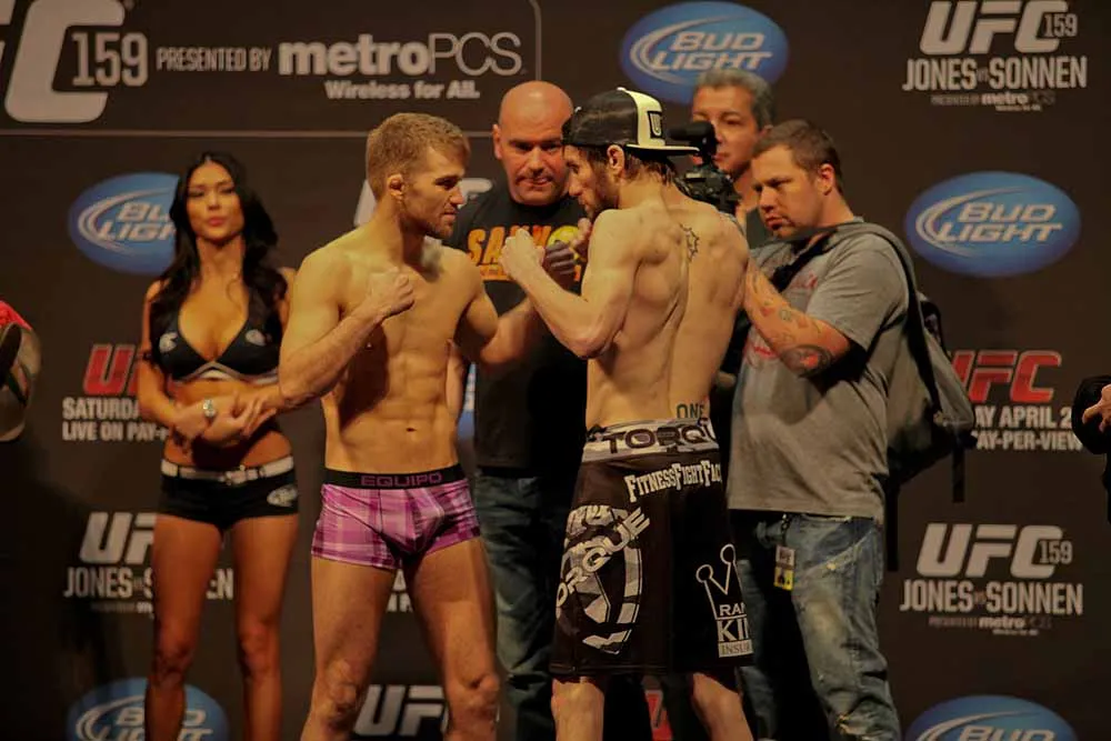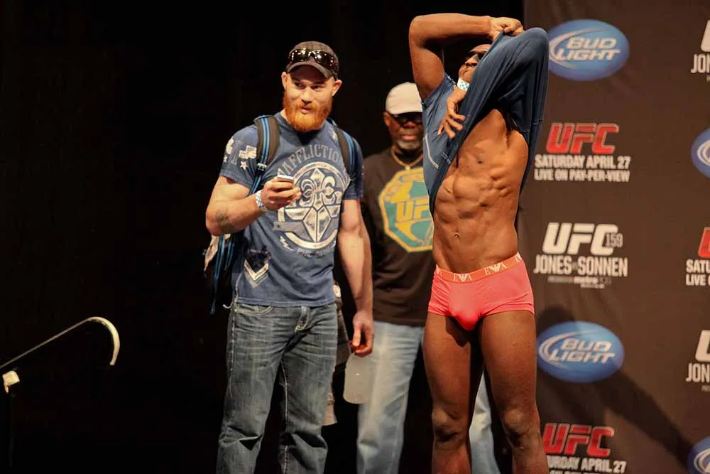 EDGE covered UFC 159 at the Prudential Center in New jersey and captured these great photos at the weigh-ins. Check out these hot fighters as they take their clothes off to step onto the scale!