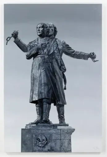 “Yes, yes,” Chávez agreed. “One of the biggest paintings that I’m presenting is of a statue of Miguel Hidalgo [called ‘the father of Mexican independence’], and it’s this overlap of the one that’s in Dolores Park, and the other statue is of the same guy in Guadalajara, the city where I grew up. So, I’m doing this overlap of the same person, but I’m not focusing really about this persona or this guy who helped to liberate Mexico. My point of view here is more, what is the concept or what is this image that we have about freedom, or what is freedom for us?